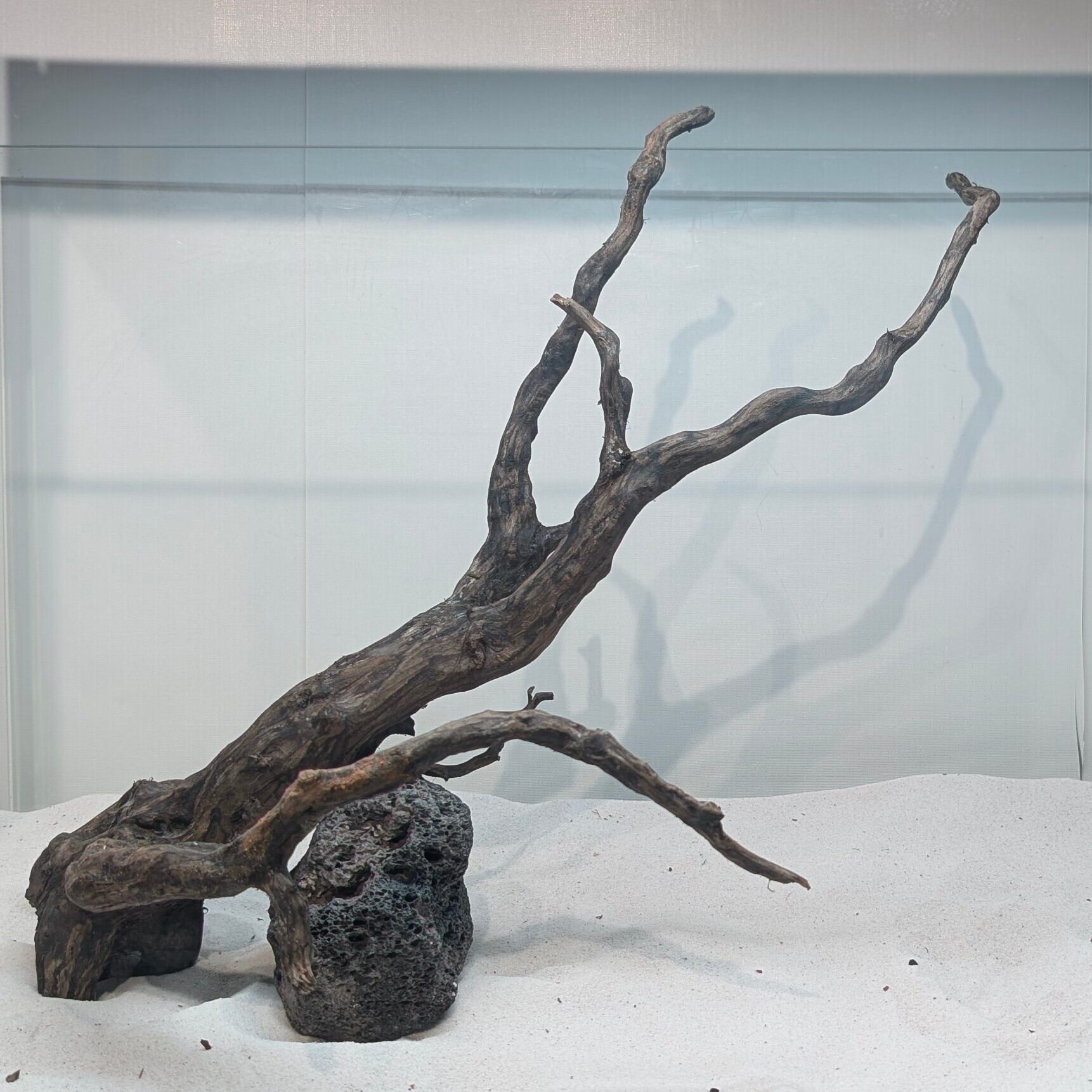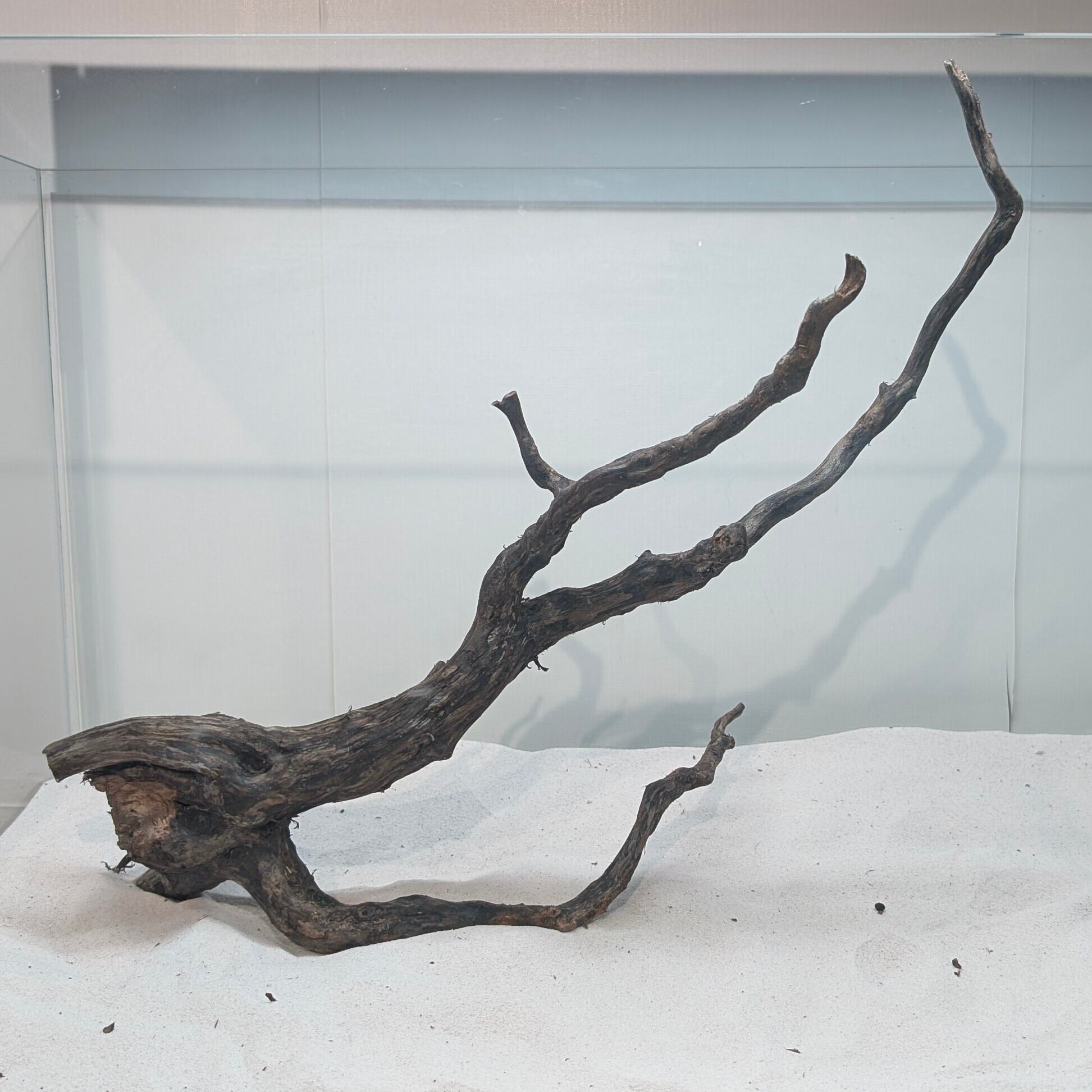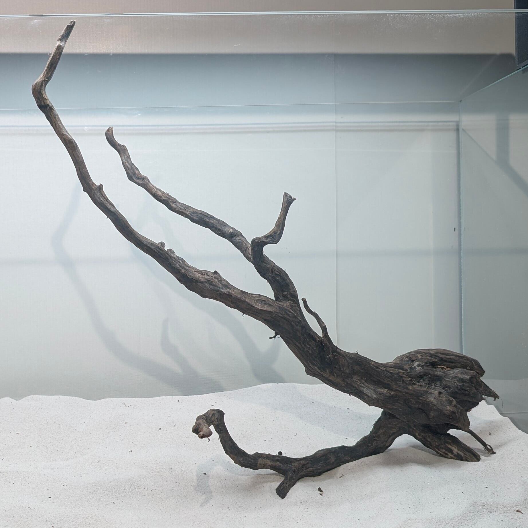 長い沈水期間により自然な黒色を引き出したスマトラブランチウッド。植物とのコントラストが美しく映えます。