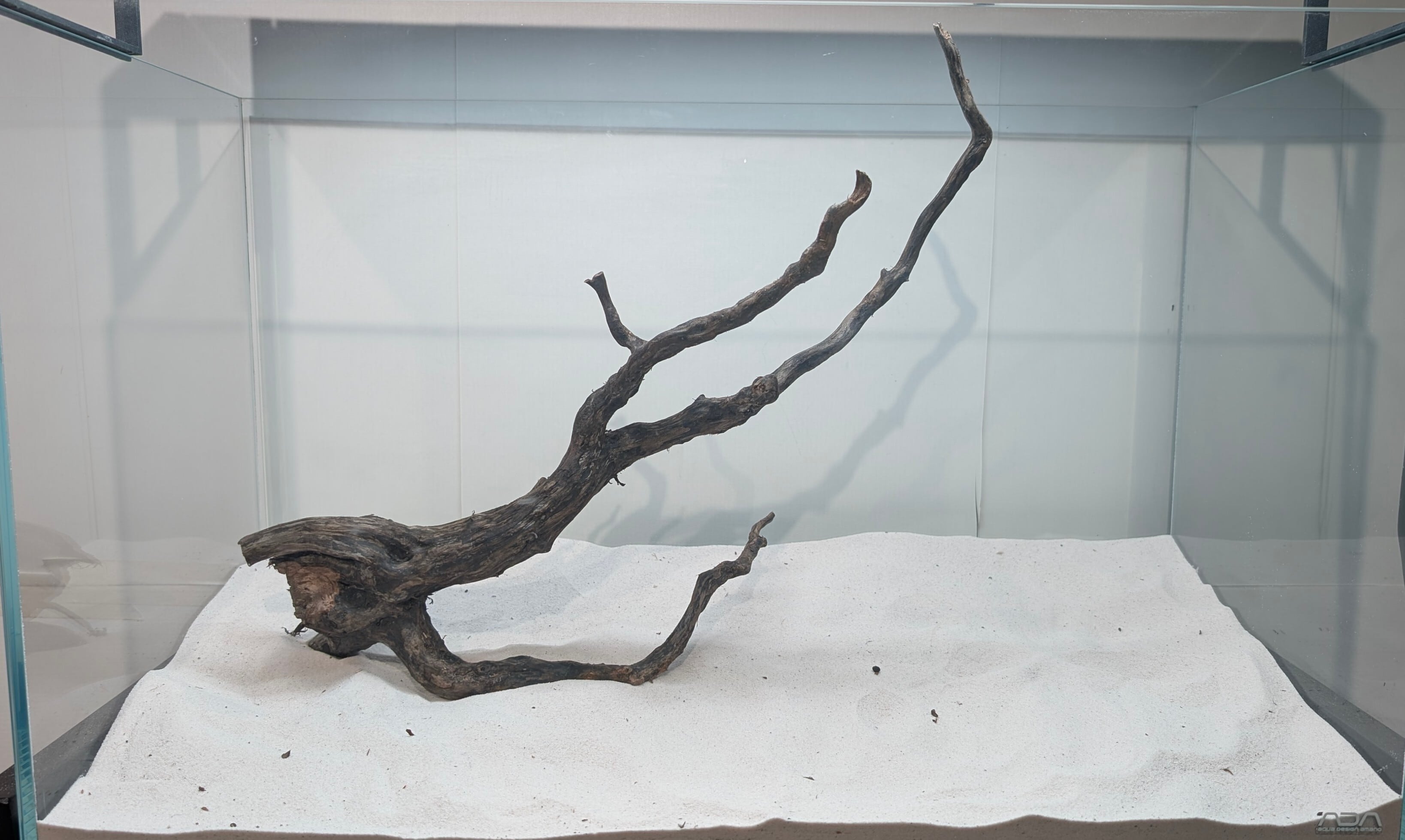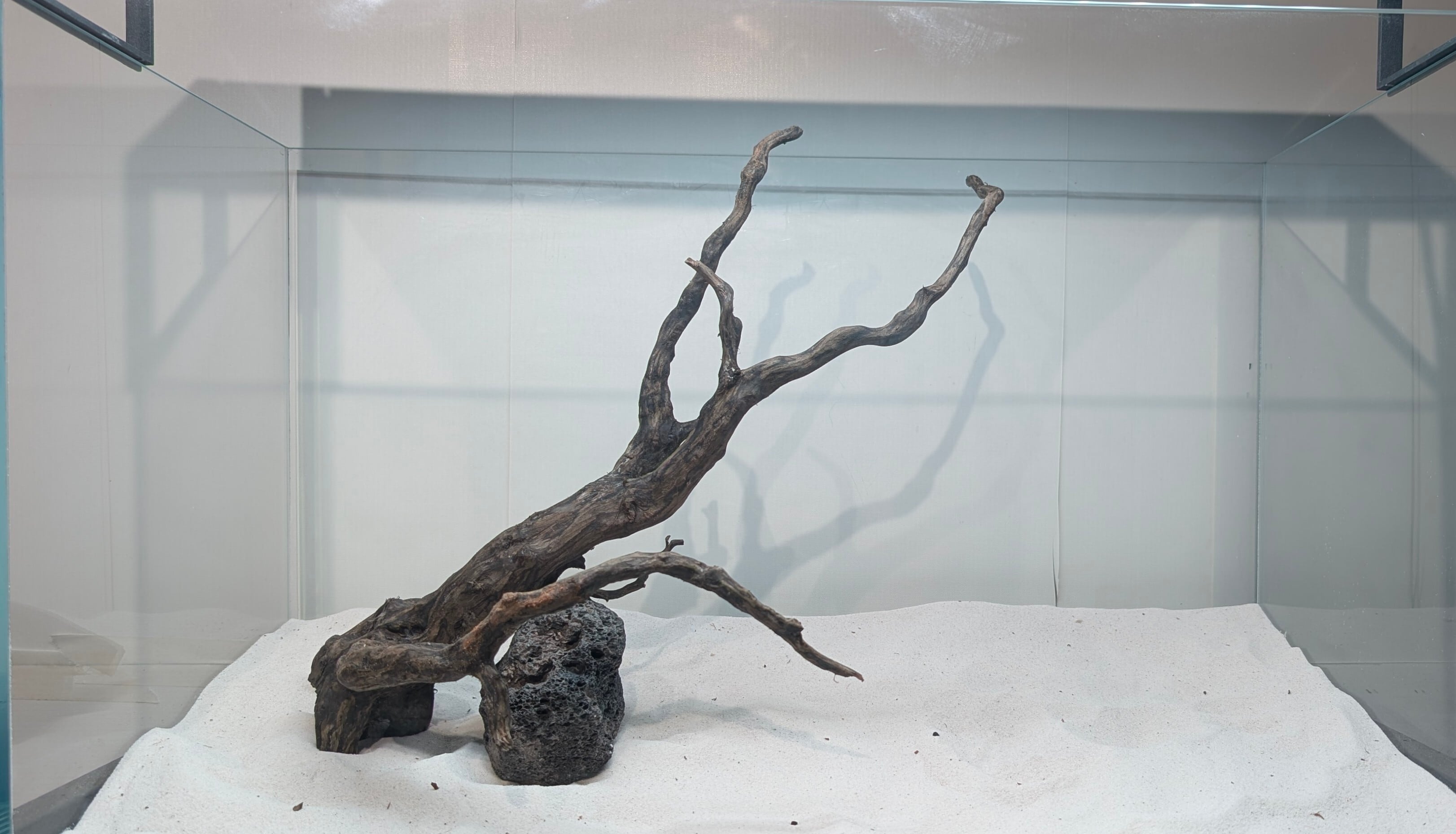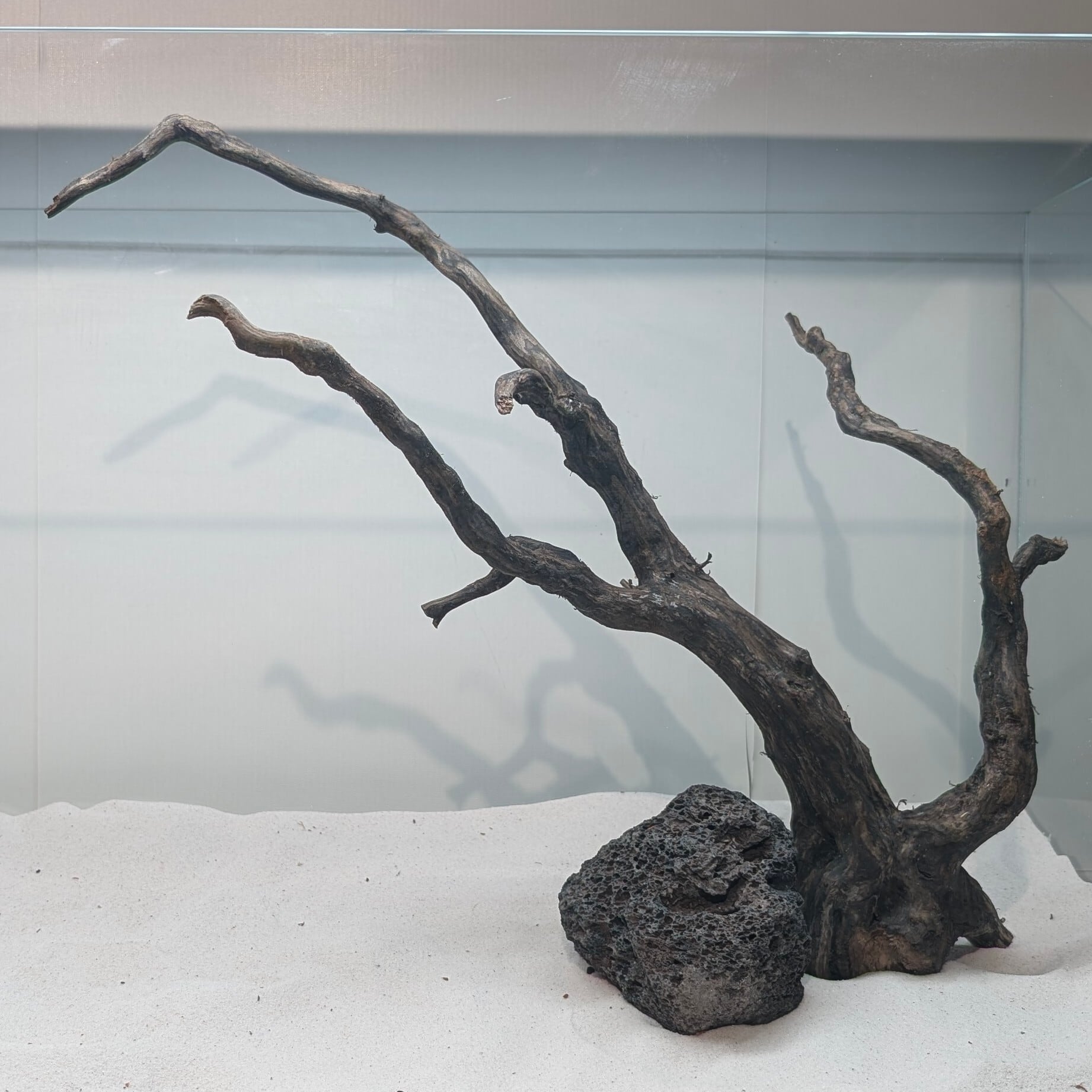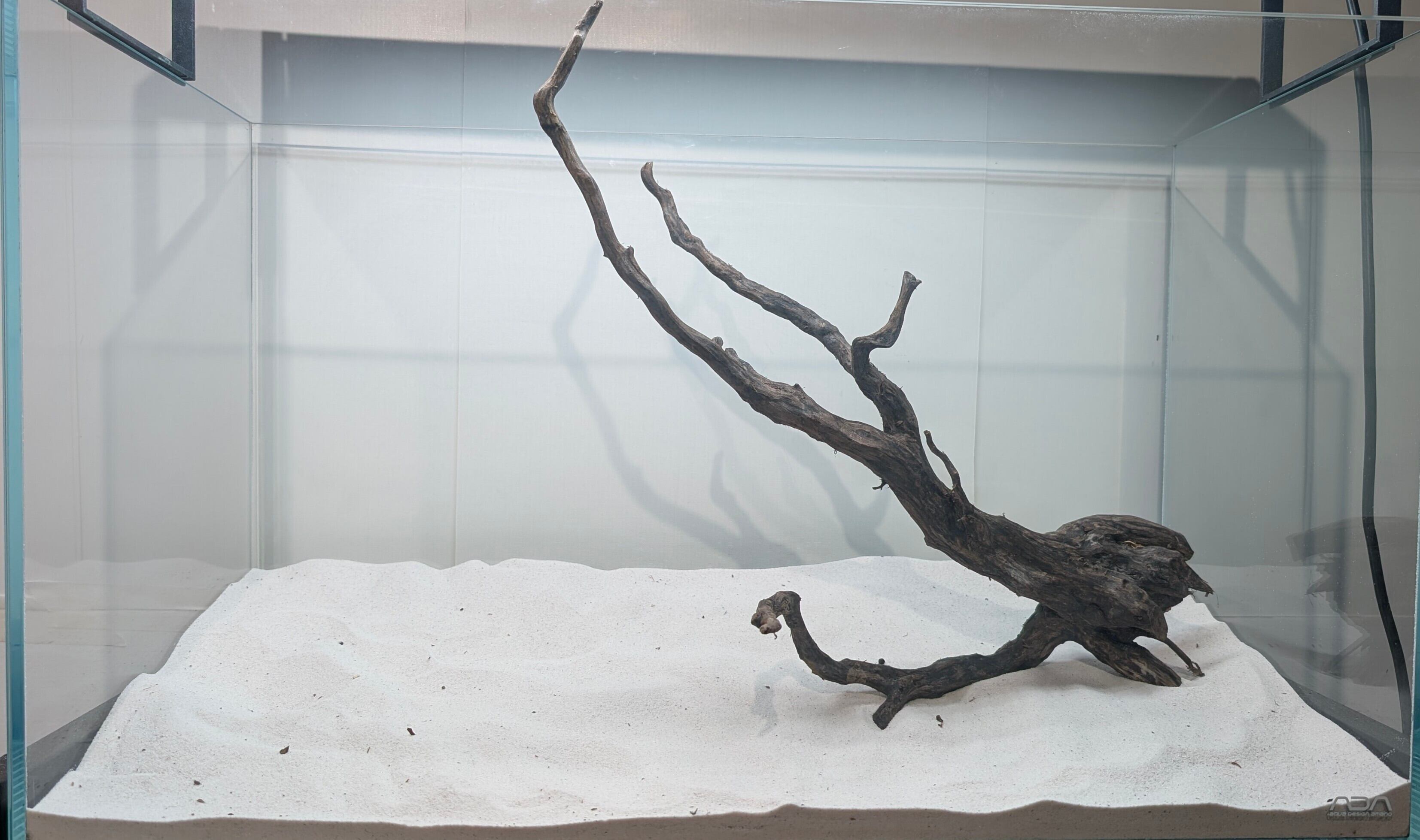 長い沈水期間により自然な黒色を引き出したスマトラブランチウッド。植物とのコントラストが美しく映えます。
