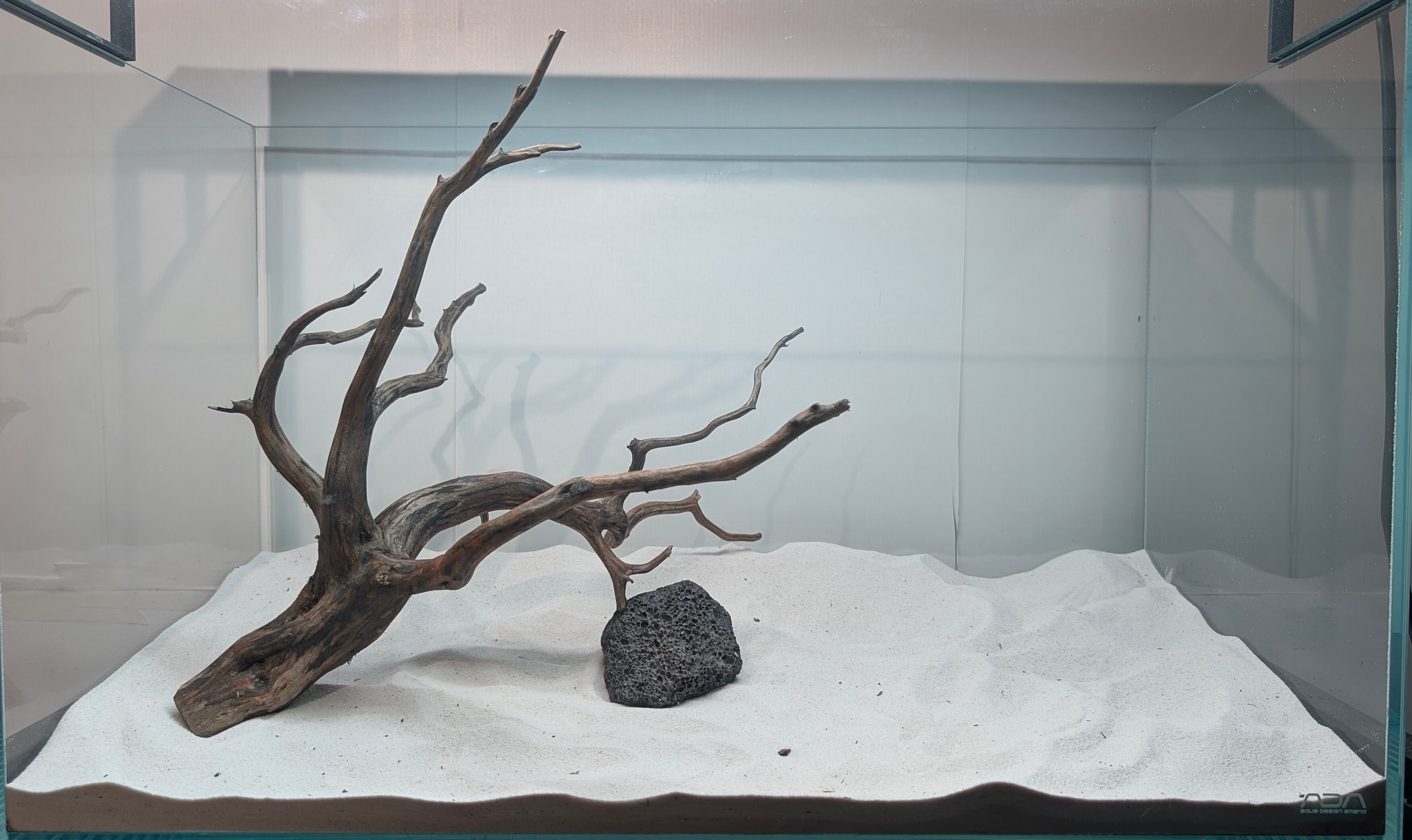 長い沈水期間により自然な黒色を引き出したスマトラブランチウッド。植物とのコントラストが美しく映えます。