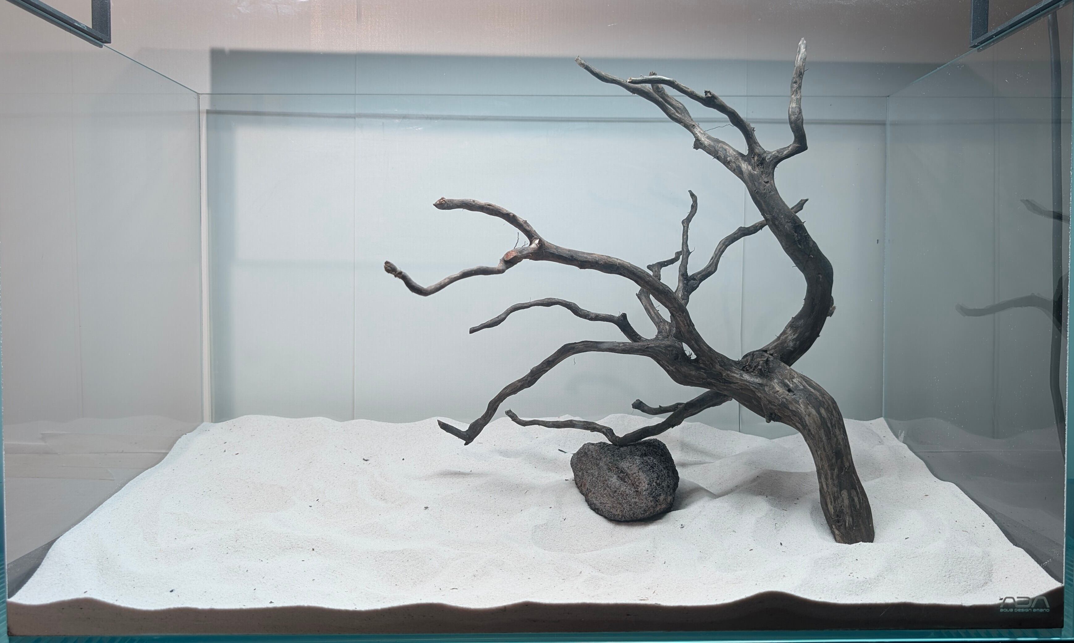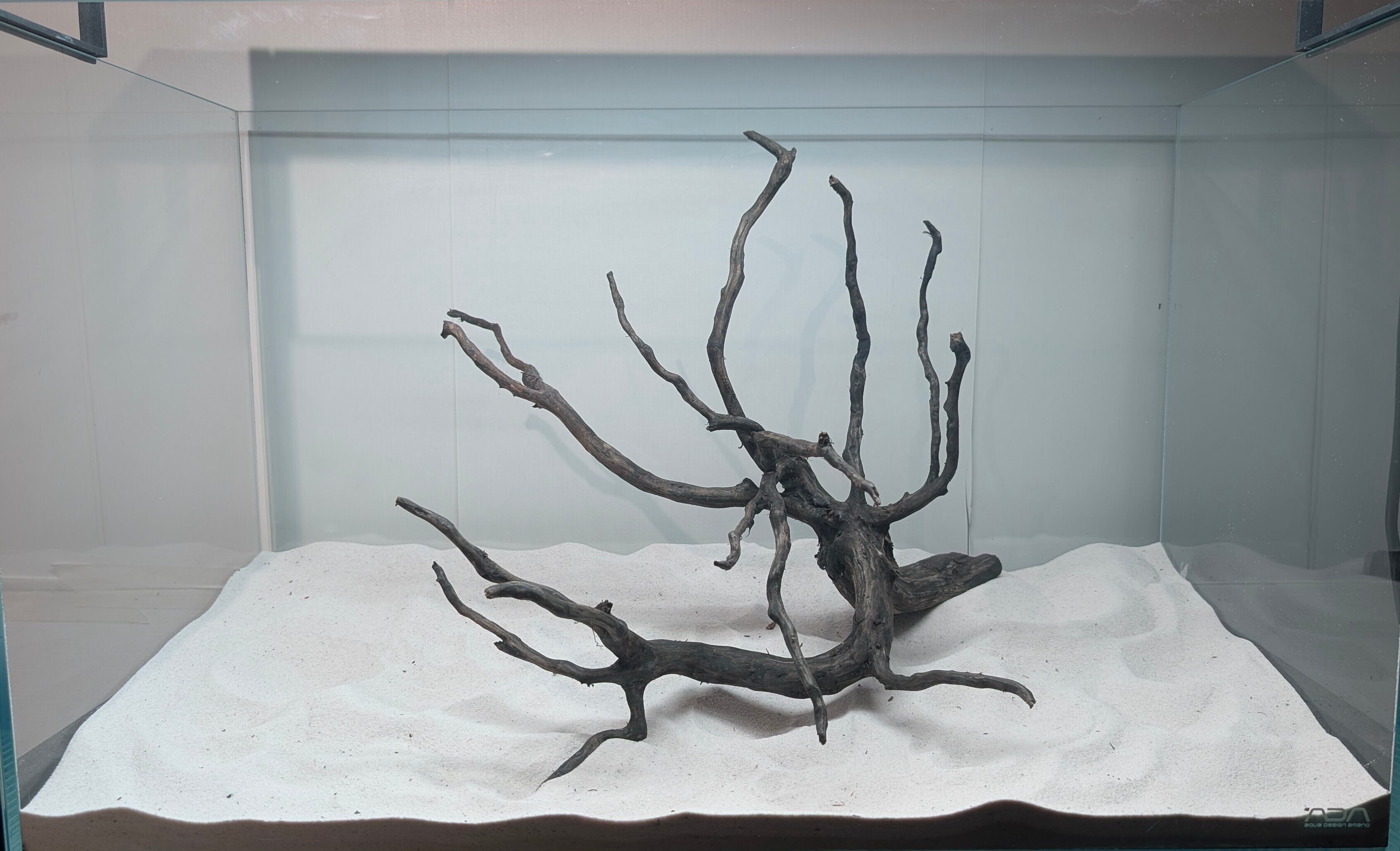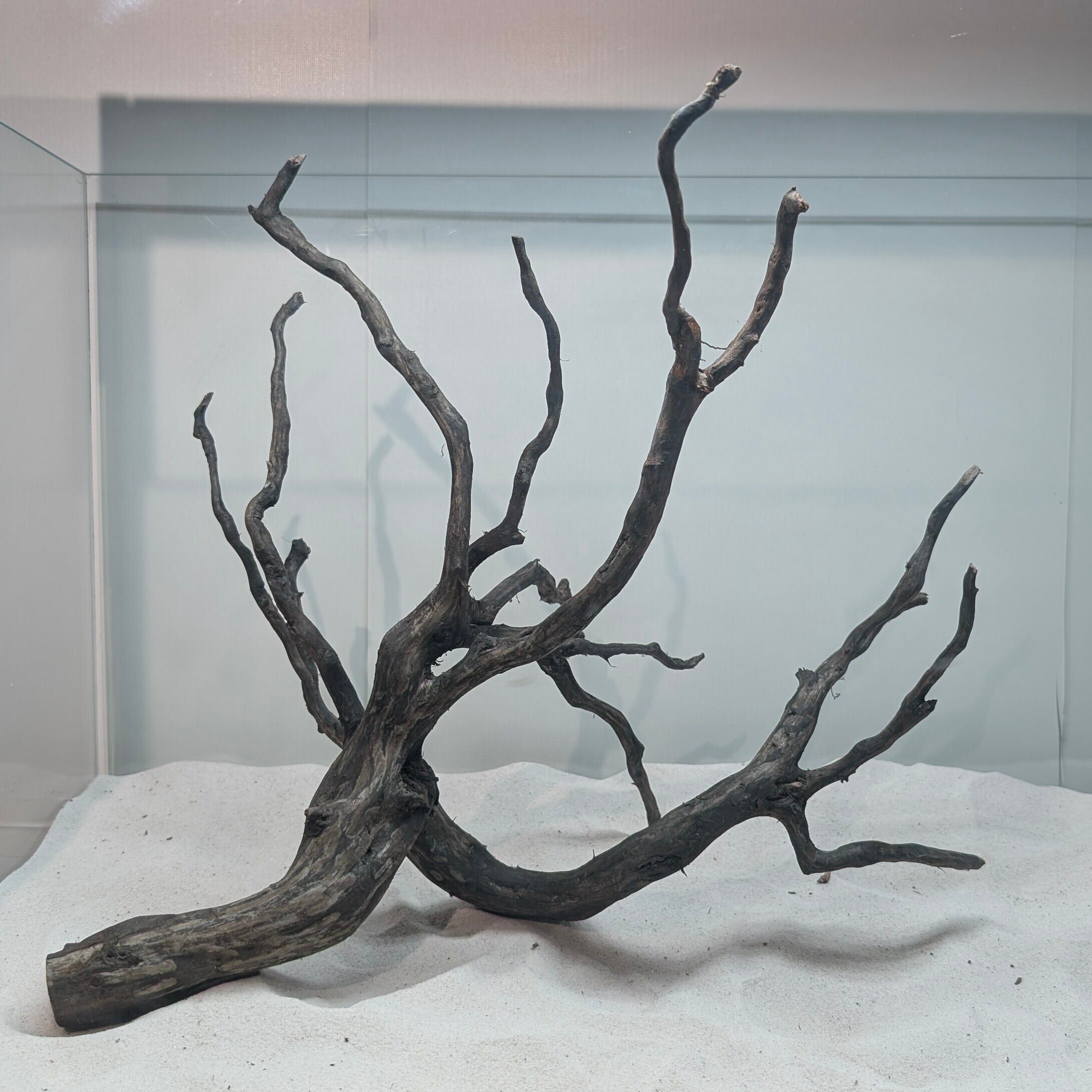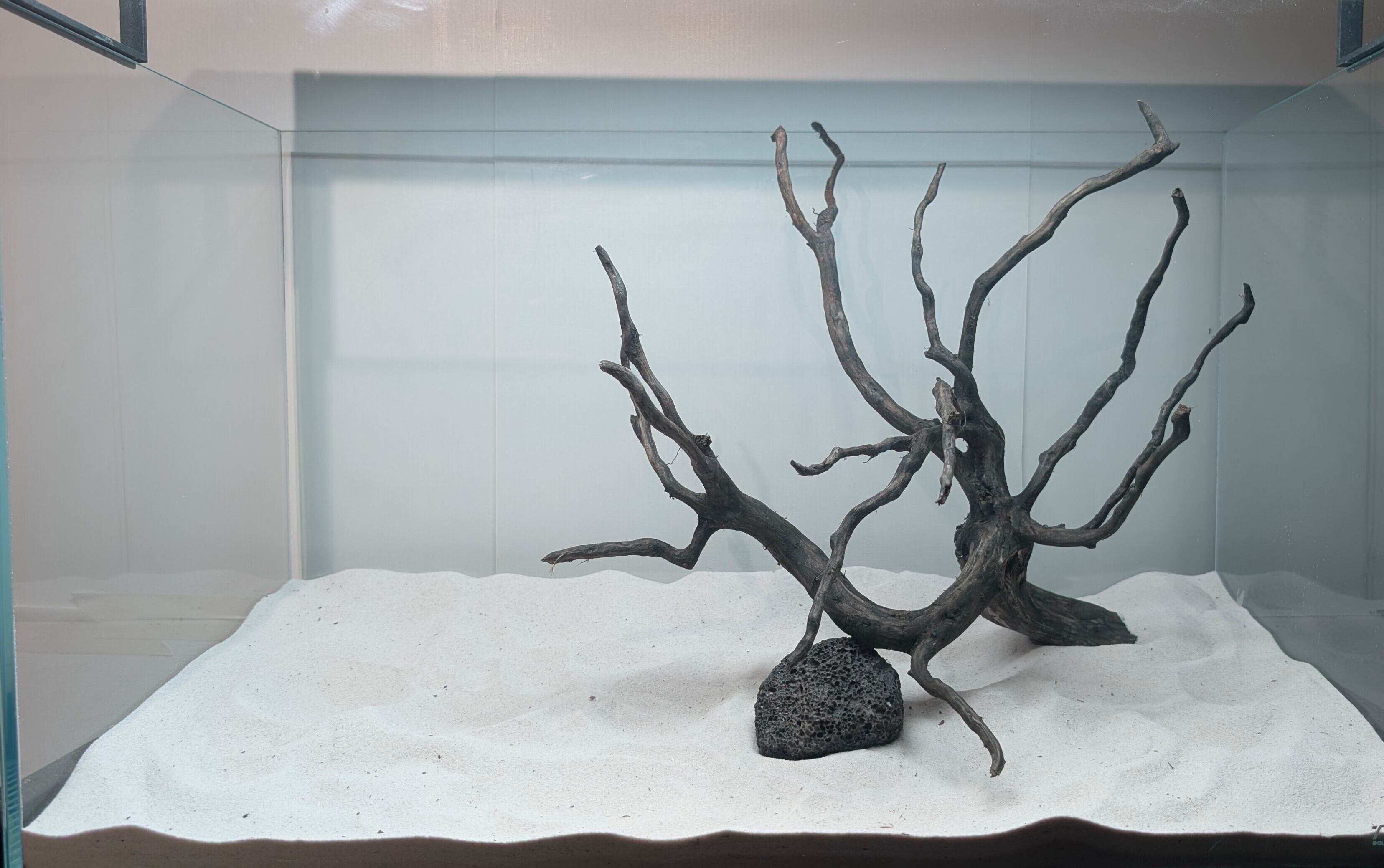 長い沈水期間により自然な黒色を引き出したスマトラブランチウッド。植物とのコントラストが美しく映えます。