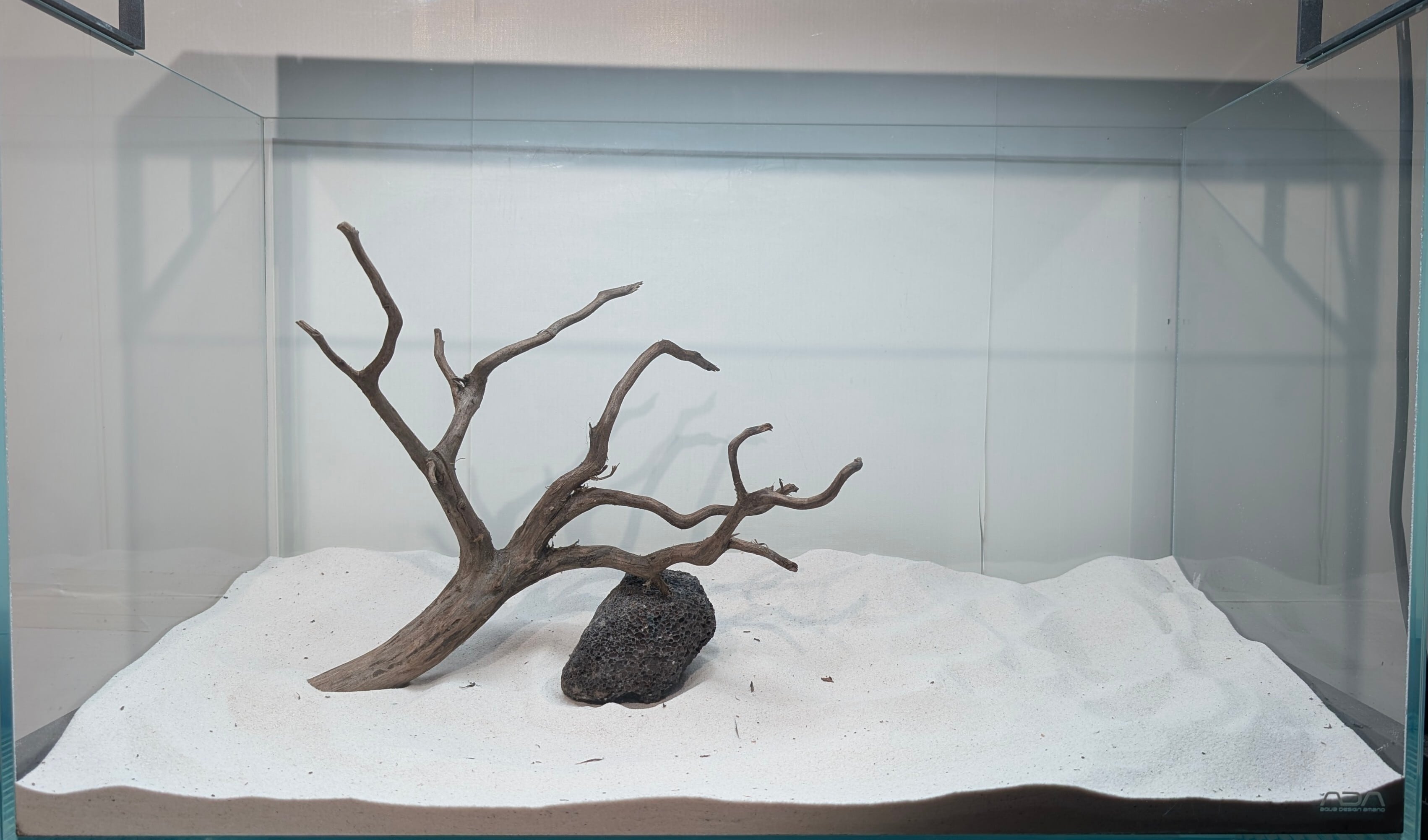 長い沈水期間により自然な黒色を引き出したスマトラブランチウッド。植物とのコントラストが美しく映えます。