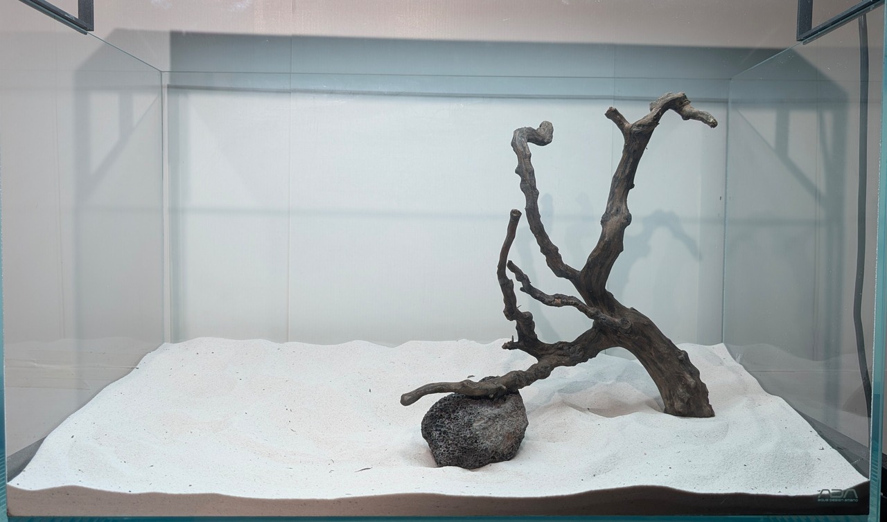 長い沈水期間により自然な黒色を引き出したスマトラブランチウッド。植物とのコントラストが美しく映えます。