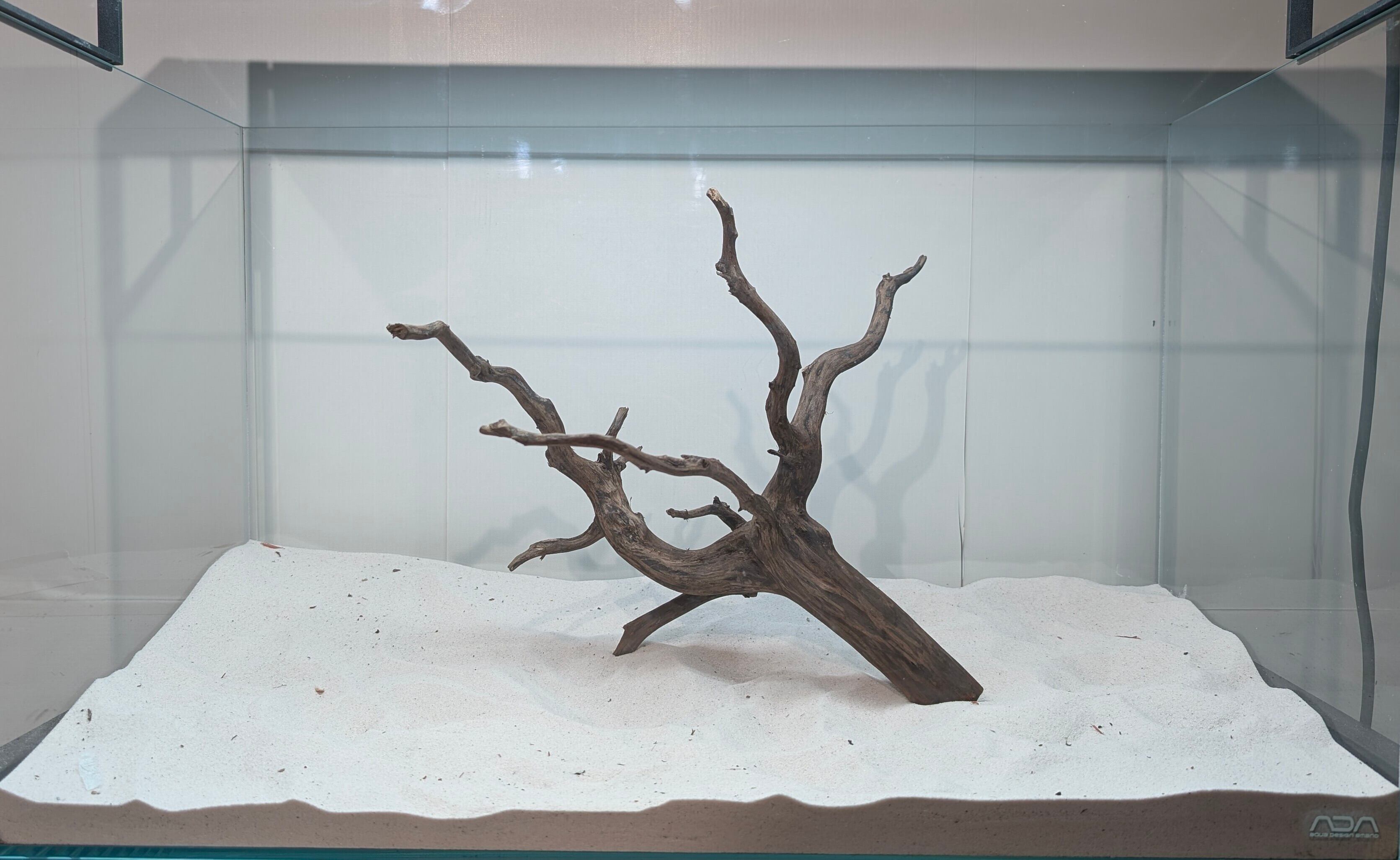 長い沈水期間により自然な黒色を引き出したスマトラブランチウッド。植物とのコントラストが美しく映えます。