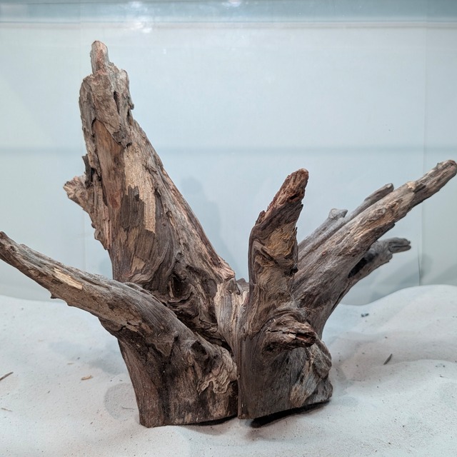 木々の幹や枝を一纏めにしたような流木で、一つで様々な表情。初心者の方にも人気のシリーズです。 ※60×30×36cm水槽で撮影しております。 【サイズ(横×奥×高cm)】 41×18×36 【商品特徴】 ・一本で様々な表現が楽しめる流木です。 ・沈水やアク抜きを行っております。 ・自立性が高く、底床材を敷いていない水槽やケージにもおすすめです。 ・実際に足を運んで買い付けたセレクト品です。 【ご注意】 ・こちらは流木のみの販売であり、写真内の模型や石材、水槽などは含まれません。 ・アクアリウムにご使用の場合、タンニン(アク)抜きは完全では御座いません。性質上、ご了承くださいませ。 ・乾燥した流木は内部構造によって割れやすくなることも御座います。ご購入にあたっては、ご了承とご注意のほどお願い申し上げます。